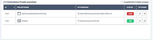 If you want to pause the project/playout of the personalization, simply activate the slider (Fig. 2) for your corresponding project again and set it to “OFF”.