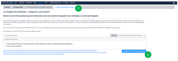 - To download the script, click on the blue button “Download JavaScript snippet” (Fig. 2).